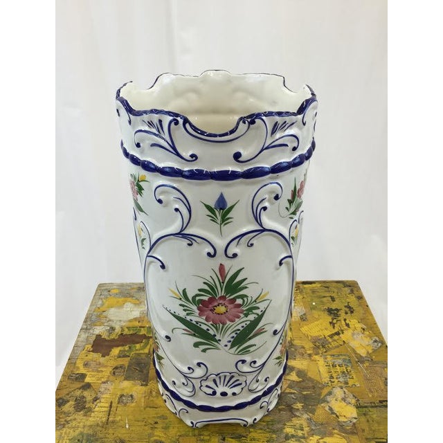 Hand Painted Ceramic Umbrella Stand or Tall Vase | Chairish