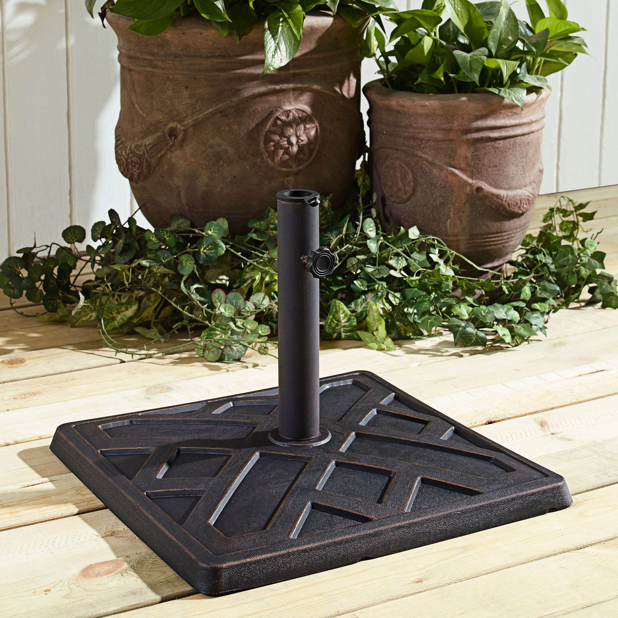 Umbrella Stand 60 Lb. Your new umbrella is only as good as its market umbrella base. Without the appropriate umbrella stand, wooden and aluminum market umbrellas would simply tip over and.